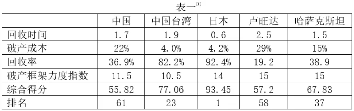 世界银行在中国大陆地区的抽样调查是以北京、上海两座城市为对象,是中国大陆经济最为发达的两个城市,应该可以代表中国在营商环境领域的最高水平,但在办理破产指标方面显示的情况不容乐观。从具体数据来看,我国存在回收时间较长、破产成本较高、回收率较低等问题。