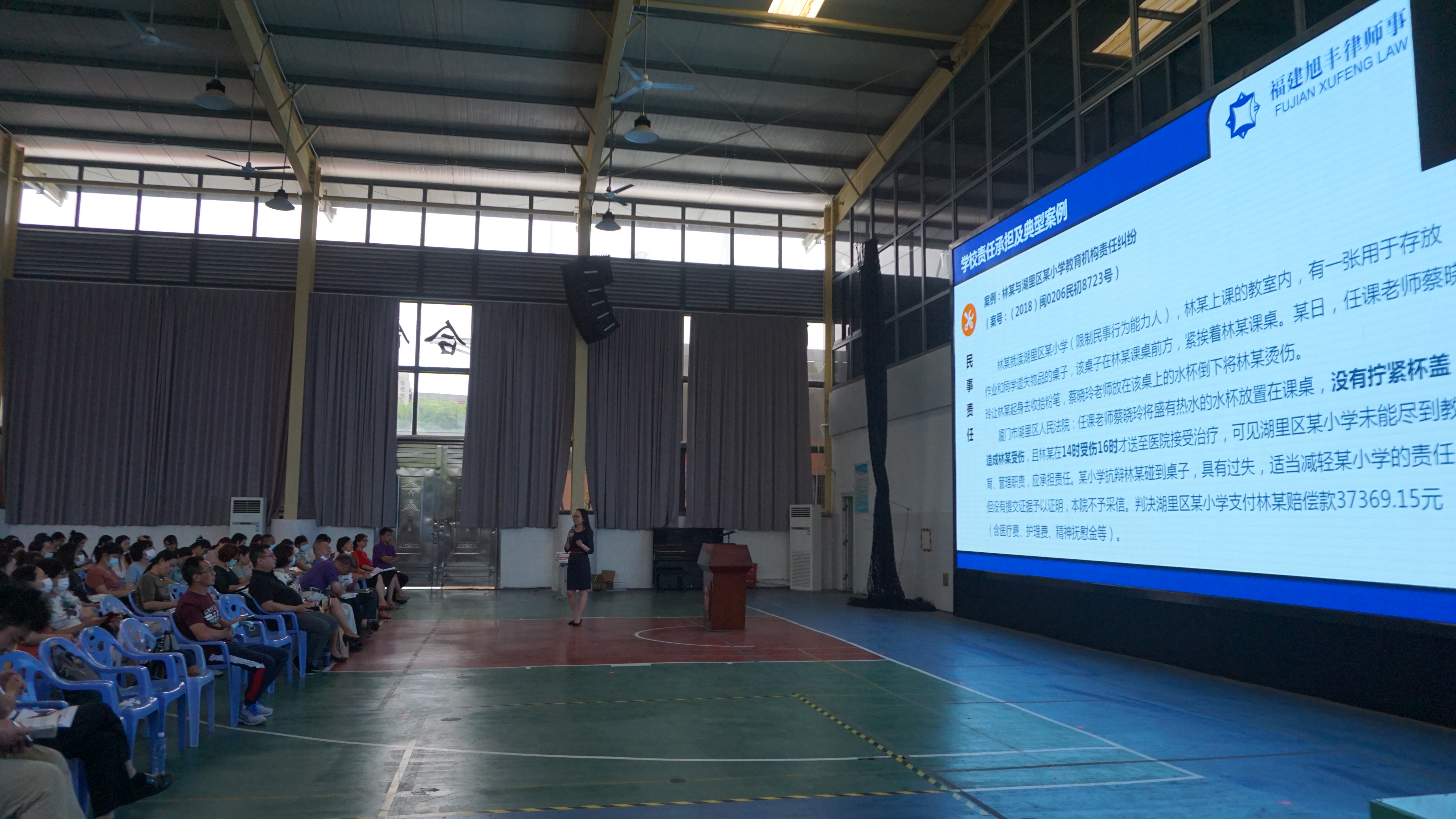 7月16日下午,我所柳冰玲律师在厦门五缘实验学校的大礼堂为该校约两百名教师开展了题为“学校法律风险及防范”的法律培训课。
