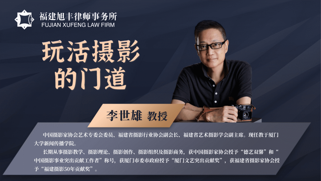 为提升本所律师摄影水平,帮助大家在旭丰二十周年所庆系列活动之摄影大赛中取得佳绩,我所有幸邀请到中国摄影家协会艺术专委会委员、福建省摄影行业协会副会长李世雄教授为我们带来“玩活摄影的门道”的主题分享。