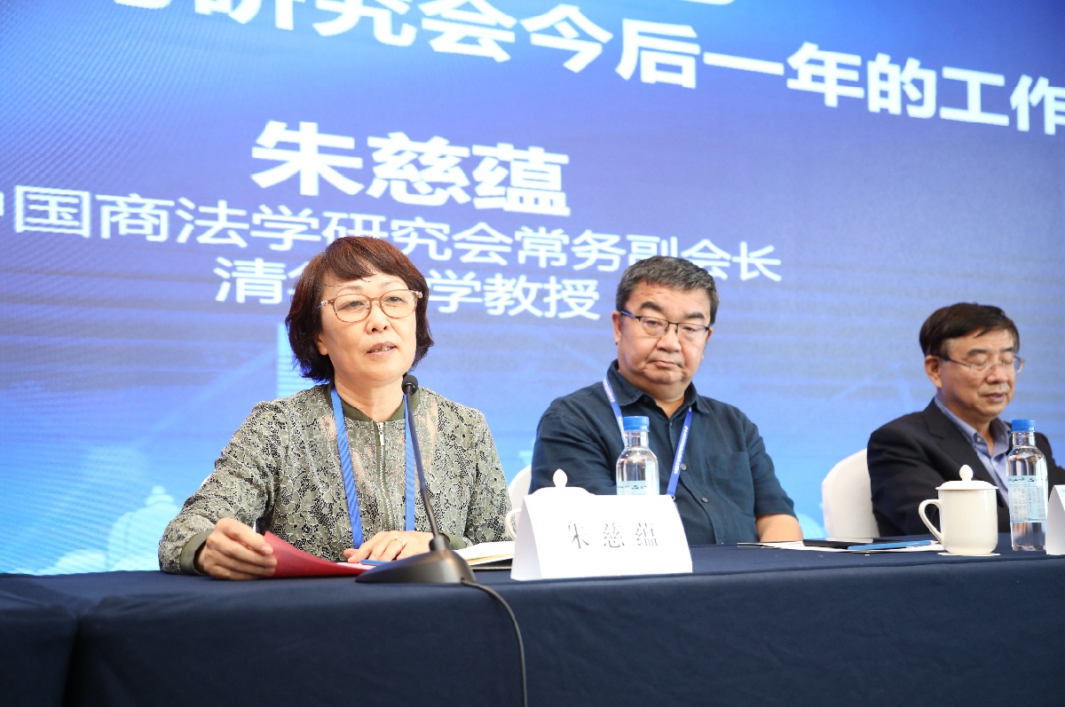 闭幕式进入下一议程,首先由商法学研究会副秘书长、中国政法大学朱晓娟教授宣读中国法学会商法学研究会新一届党支部委员会委员。紧接着,商法学研究会副会长、清华大学朱慈蕴教授作会议总结,她表示,中国法学会商法学研究会将会紧密团结在党组织的周围,继续加强党建建设。希望各位专家学者加强学术研究,为下一步修法提供建设性的建议。
