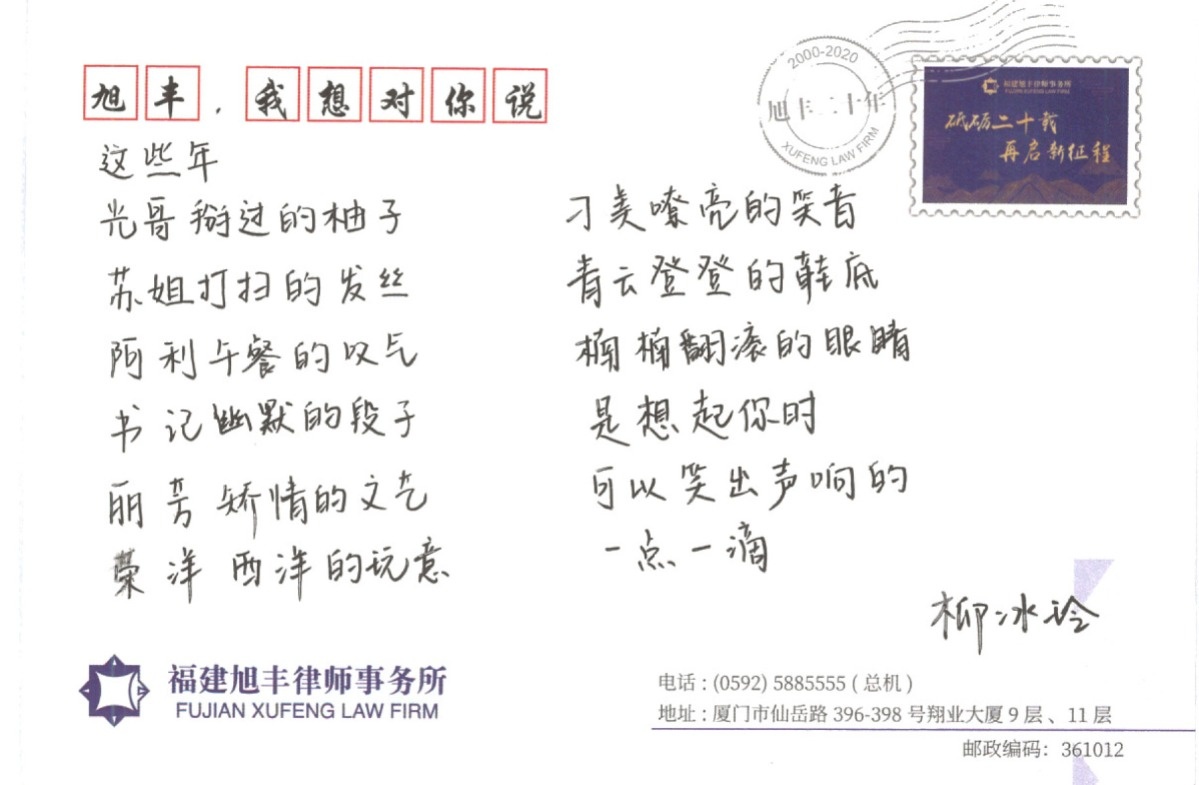 光阴似箭,日月如梭,旭丰转眼二十载。相信每一个旭丰同仁都有许多话想说。在“旭丰——我想对你说”所庆活动中,旭丰同仁将爱书写在表白卡上,用这一独特的形式来表达自己对旭丰的爱,同时也述说了自己在旭丰的故事。
