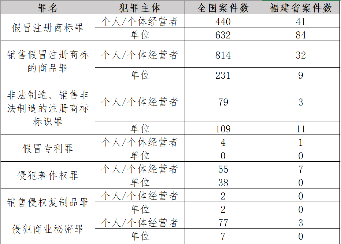 根据相关司法解释规定,知识产权单位犯罪的定罪量刑标准是个人犯罪的3倍。[1] 因此知识产权刑事犯罪中,个人犯罪的案件数多于单位犯罪。