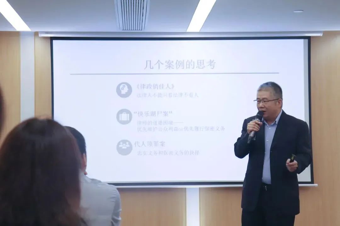 陈律师引用日本律师秋山贤三所说的“法官和律师的共同点都是从事法律,都会与普通市民相遇在他们一生中最重要而且最艰难的时刻。”辩护律师在当事人的艰难时刻,负有积极的忠实义务,应当全力以赴提供最好的辩护。同时,辩护人又有别于当事人,应当遵循更高的行为准则,负有消极的真实义务和保密义务。当辩护职业伦理发生义务冲突时,应认真权衡,谋求调和。此外,陈利群律师还结合辩护实务中的会见、取证、庭审调查和辩护等环节,分享自己权衡义务冲突、恪守职业伦理的经验和做法。