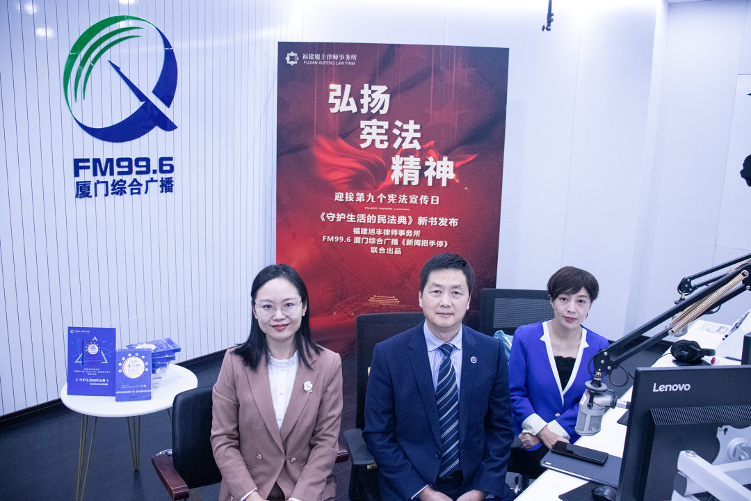 2022年12月1日上午,我所刘福来、柳冰玲律师受邀参加由海蕾主持的厦门综合广播《新闻招手停》主题特别栏目“照耀人生的宪法 守护生活的民法典”,与听众一齐分享生活中的宪法知识。